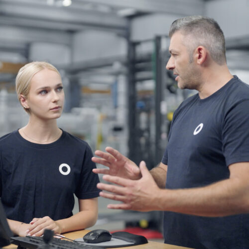 Um diesen Gedanken zu transportieren, wählten wir ein Drehbuch mit zwei Perspektiven. Wir haben gezielt auf Match-Cuts gesetzt, um die beiden Erzählstränge visuell miteinander zu verknüpfen. Die Übergänge – etwa von einer Alltagshandlung der Konsumentin zu einer Produktionsszene im Werk – erzeugen eine fließende Bildsprache. So entsteht nicht nur Rhythmus und Spannung, sondern auch ein subtiler Hinweis darauf, wie eng Technik und tägliches Leben miteinander verbunden sind.